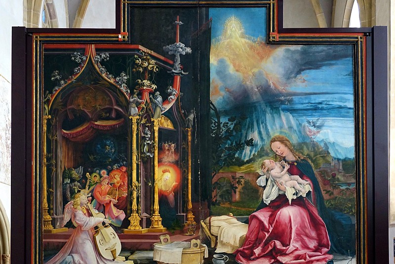 Deux oeuvres-clé tout près de chez nous, deux oeuvres essentielles pour signaler l’indubitable rayonnement du nouveau centre artistique qui s’est créé au Nord des Alpes dès les années 1415, d’abord autour de Konstanz (concile de 1418-1419), puis de Bâle, où se déplace le concile en 1431, drainant une pléiade d’artistes et de commandes artistiques. Sans oublier la toute proche et foisonnante ville de Strasbourg en plein chantier de modernisation de sa formidable cathédrale. Là, autour de l'équipe du maître maçon, se multiplient les innovations qui culmineront dans l’art incisif autant que volubile de Martin Schongauer puis de Konrad Witz assurant ainsi à ces maîtres de la région du Haut-Rhin une réputation que viendront couronner au tournant du siècle les fortes personnalités de Dürer, Grünewald, Altdorfer, figures de proue de la puissante Renaissance allemande.
